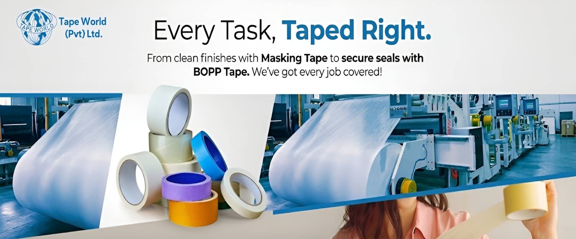 Tape World delivers high-performance adhesive solutions using two advanced technologies: Acrylic and Hot Melt. Our tapes are designed to support a wide range of manual as well as automated applications.